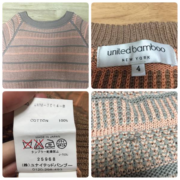サイズ表記は4、素人平置き実寸・着丈/約69cm、身幅/約55cm、肩幅/ラグランスリーブのため計測不可、