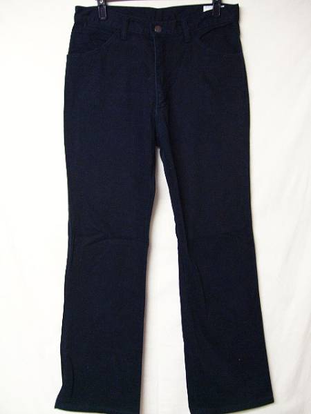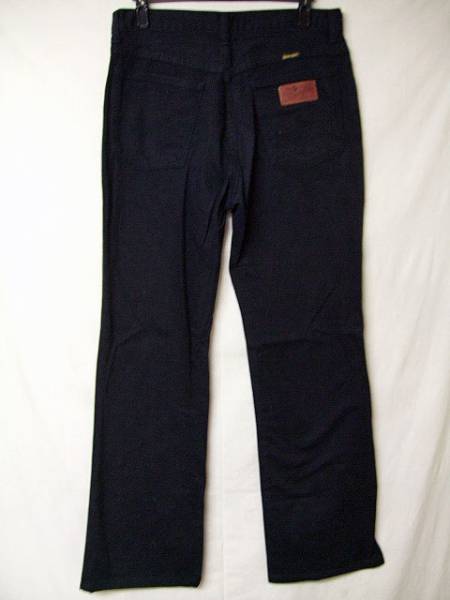 Wrangler F1712-19 ブーツカットパンツです。色は黒。脚長効果のブーツカットで、何にでも合わせ易く重宝するアイテムです。綿100%◆表記サイズ…31-4 実寸サイズ…ウエスト約74cm 股下約74.5cm 腿幅約27cm 裾幅約21.5cm◆USEDです。多少色褪せ有りますが綺麗な状態です。◆