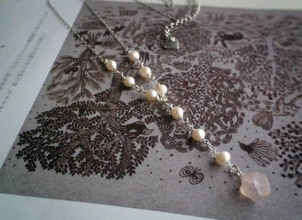 私的アート・・シリーズです♪ロマンチック気分で・・小さな淡水パールとローズクォーツのお花のネックレスです♪6ミリ位のパールに12ミリのローズクォーツのお花を合わせてラリエット風のデザインです♪長さは60センチ+アジャスター12センチで全長72センチ位です♪トップは7センチくらいです♪お揃いのブレスレットやピアスも出品しています♪シンプルで飽きのこないいつまでも着けられるデザインを考えて作りました!ハンドメイドをご理解頂いてノークレーム、ノーリターンでお願いします