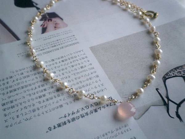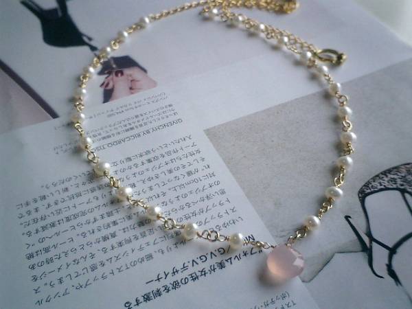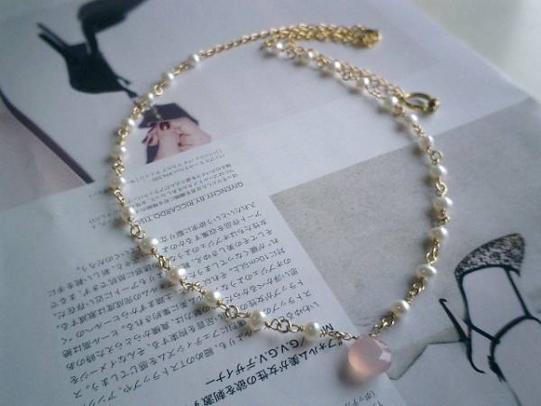 お気に入りのフォルム・・シリーズです♪小さなパール・・淡水パールとピンクカルセドニーのネックレスです♪小粒の淡水パールに繊細なピンクカルセドニーのマロンカットを合わせて可憐な表情です♪淡水パールは5ミリ位のポテト、ピンクカルセドニーは9×13ミリ位です♪長さは全長65センチ位で調節自由です♪チョーカー風にされても可愛いです♪お揃いのブレスレットやイヤリングも出品しています♪シンプルで飽きのこないいつまでも着けられるデザインを考えて作りました!ハンドメイドをご理解頂いてノークレーム、ノーリターンでお願いします