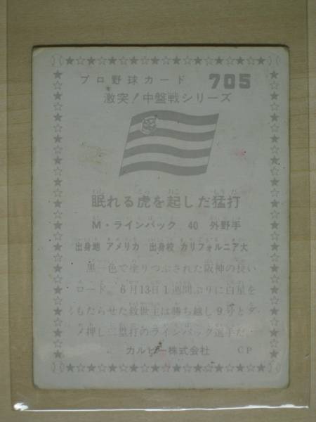 カルビー1976 プロ野球チップス 激突!中盤戦シリーズ No.705 M・ラインバック