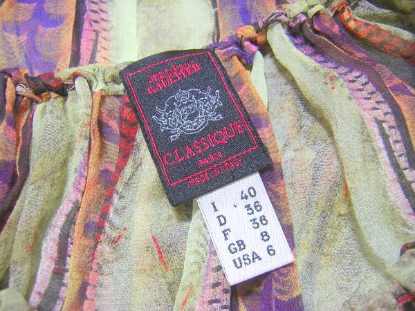 Jean Paul GAULTIER CLASSIQUE のイタリア製、 シルクシフォンブラウスでございます。 透け感あり/ | |