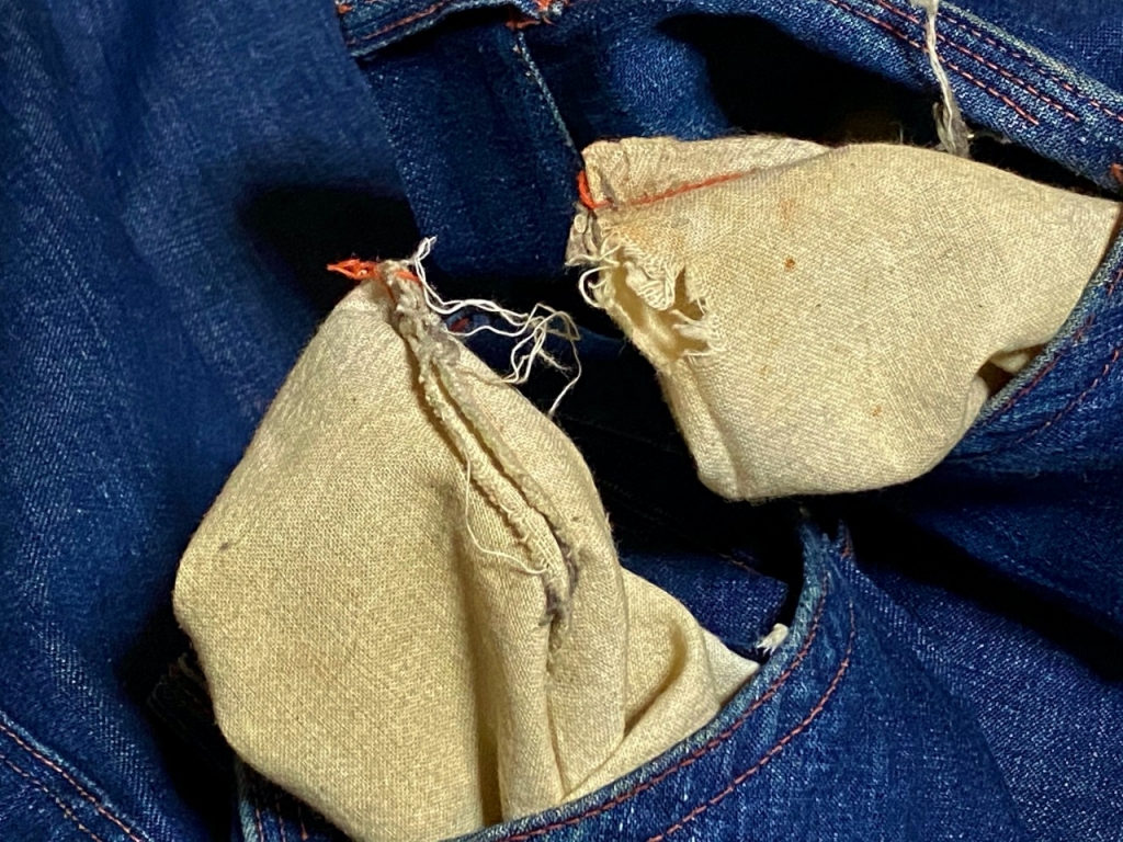 トップボタンからおそらくSEARS(シアーズ)系のストアブランドの物かと思いますが、シンチバック以外にも剥き出しリベットやリーバイス社の特許であるアーキュエイトステッチなどかなり内容の濃いディティールが楽しんで頂けます。