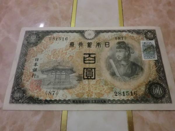 不換紙幣100円 2次100円の証紙付で極美品です。