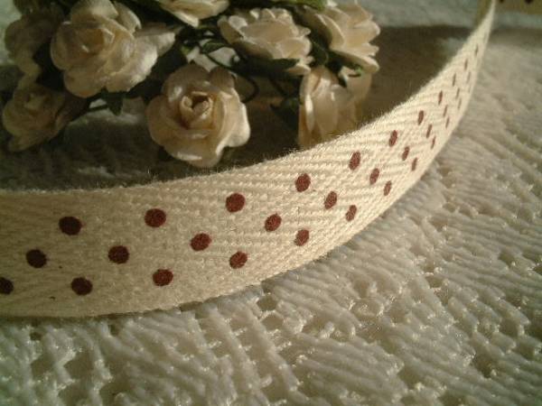 ご覧頂きありがとうございます。 小さな水玉柄のプリント綾テープになります。0.05mm程の厚みです。 リボンの巾は約11mmになります。 お取り置きも承りますので、落札後に1度必ずご連絡くださいませ。 オンラインショップとの同梱も可能です。 | ||
