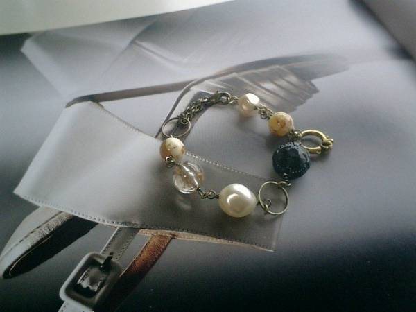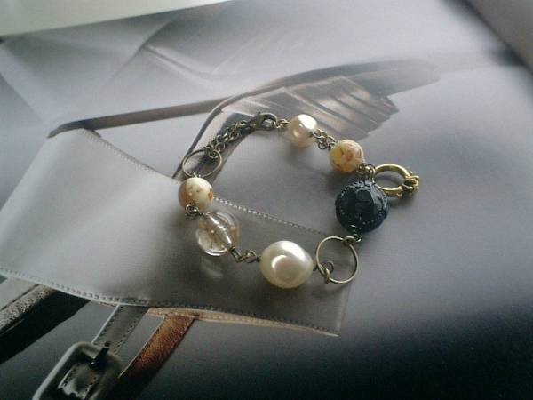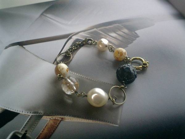 エスニック・気分・・シリーズです♪シックな異素材を集めたブレスレットです♪8ミリから18ミリ位までのデザイン樹脂ビーズやドイツビーズやチェコビーズに10ミリ位の琥珀の丸玉を添えてエスニックな表情です♪長さは全長23センチ位で調節自由です♪お揃いのブレスレットやネックレスも出品しています♪シンプルで飽きのこないいつまでも着けられるデザインを考えて作りました!ハンドメイドをご理解頂いてノークレーム、ノーリターンでお願いします |