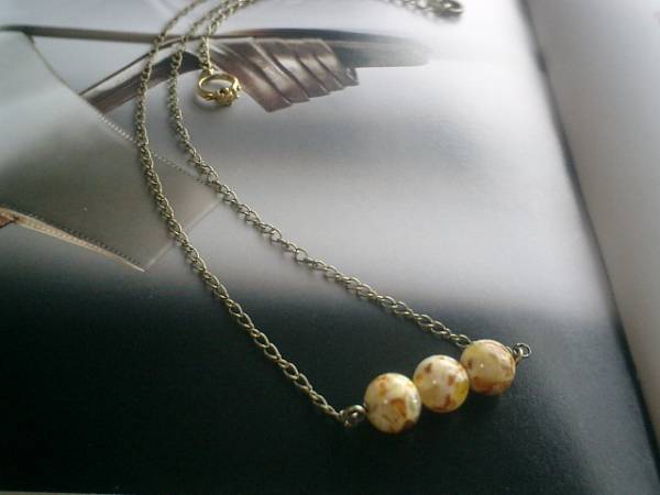 エスニック・気分・・シリーズです♪琥珀の夢・・シックな琥珀のネックレスです♪10ミリ位の丸玉の琥珀に繊細なチェーンを合わせてエスニックな表情です♪♪長さは55センチ+アジャスター12センチで最長67センチ位です♪お揃いのネックレスやブレスレットも出品しています♪シンプルで飽きのこないいつまでも着けられるデザインを考えて作りました!ハンドメイドをご理解頂いてノークレーム、ノーリターンでお願いします