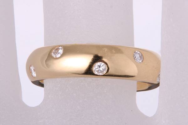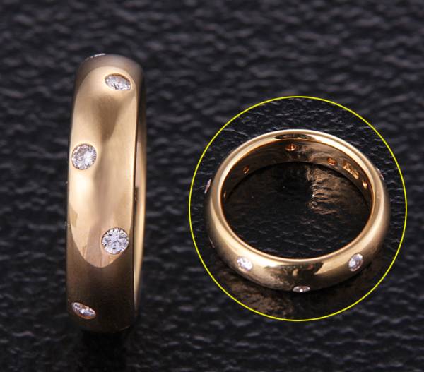 甲丸タイプのK18製リングに、計0.28ctのダイアが
