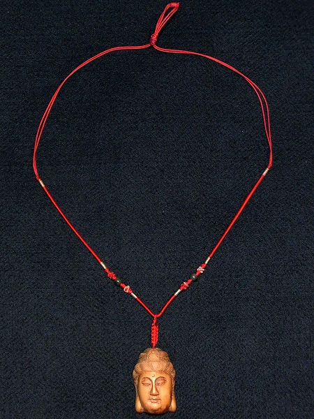 中国 木彫り 観音菩薩 仏頭ネックレス 仏教 エスニック 民族