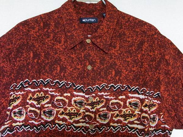 即決!USA古着●puritan総柄デザイン半袖シャツ!アメカジレア!アメリカで買ってきましたユーズドの鮮やかな総柄デザイン半袖シャツです。素材はレーヨン100%です。カラーは写真を参考にして下さい。サイズ着丈(後ろ)約78cm、身幅約62.5cmです。素人採寸ですので多少の誤差はご了承お願い致します。状態は古着ですので、ある程度の着用感あります。特別目立つキズ、よごれはありませんが、あくまで古着として考えてください。古着にご理解のある方の入札お願いします。定型外郵便または、ゆうパック着払いでの発送になります。他にもいろいろ出品しています。よろしくお願いします。