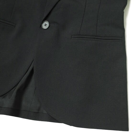 こちらはソフトな質感のストレッチウールを使用したブラックスーツ。