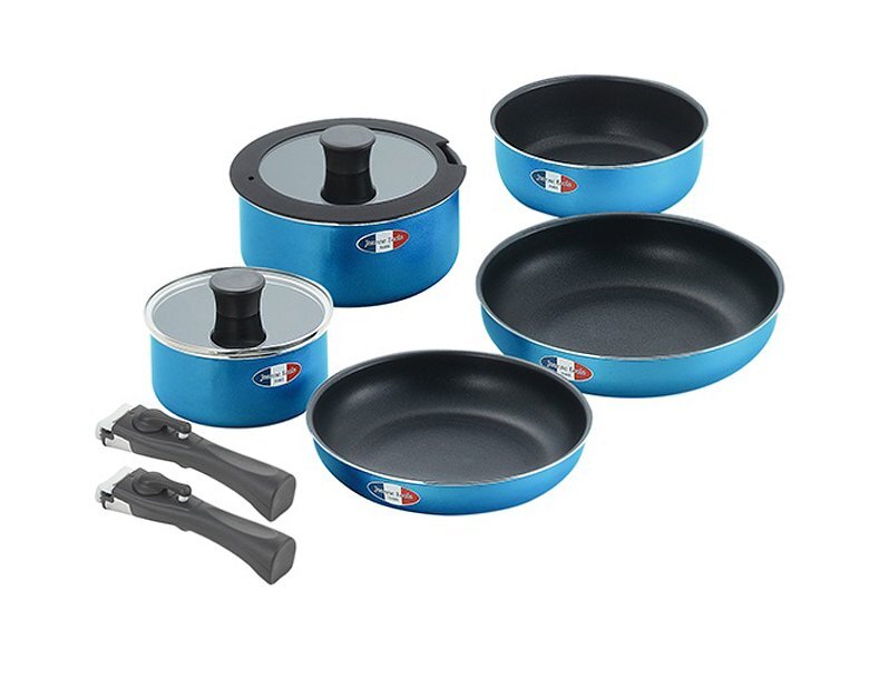☆ジャンヌ・エコール着脱式ハンドル鍋5点セットIH100・200V対応フライパン2点ディープパン1点ポット2点新品