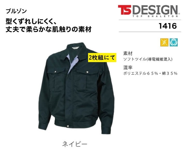 ビックイナバ特価◆TSDESIGN 1416[秋冬]長袖ブルゾン【42ネイビー・4Lサイズ】ソフトツイル素材・定価1枚11660円の品、2枚即決2980円