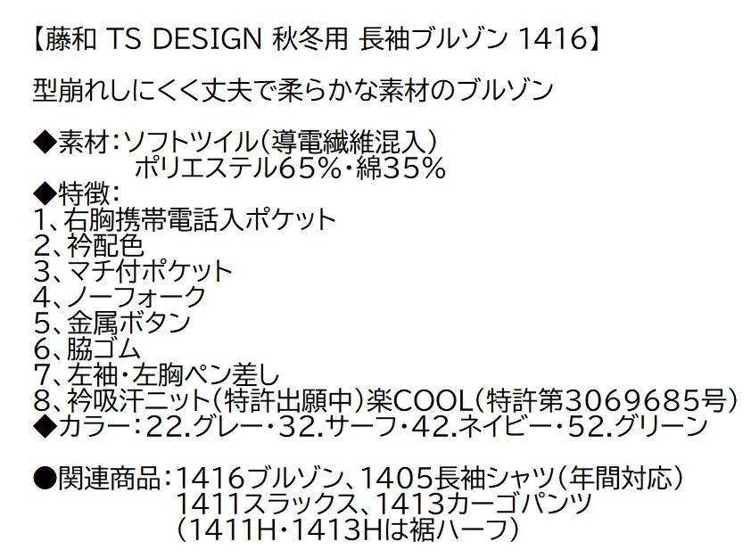1416ブルゾン、1405長袖シャツ(年間対応)