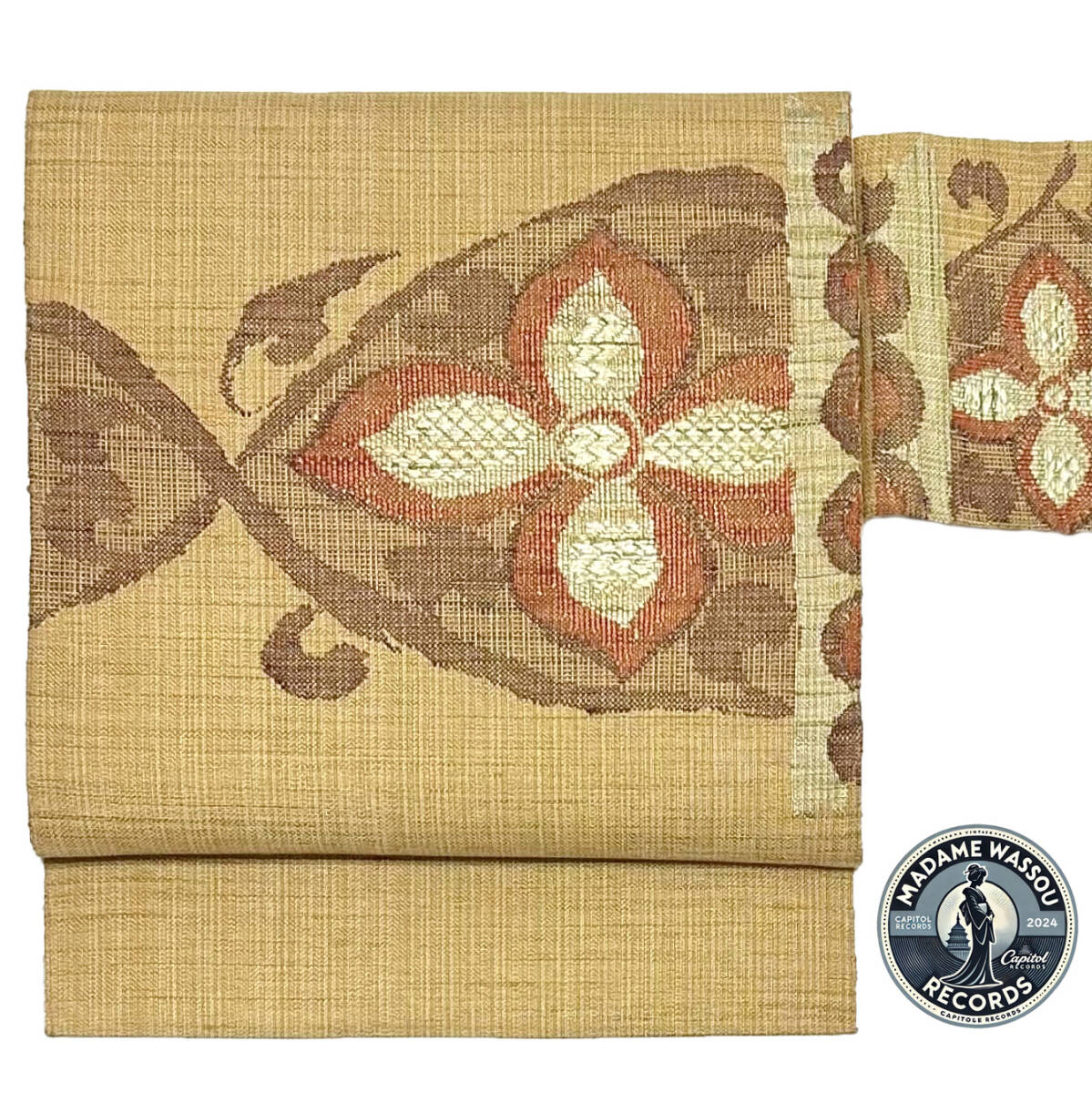 八寸名古屋帯 紬 唐花 お太鼓柄 サンドベージュ カジュアル 仕立て上がり 綺麗 MWR-No.341 20102025 マダム 和装