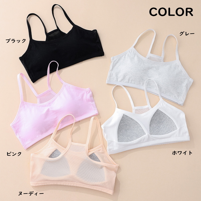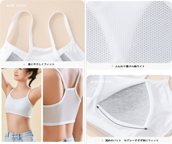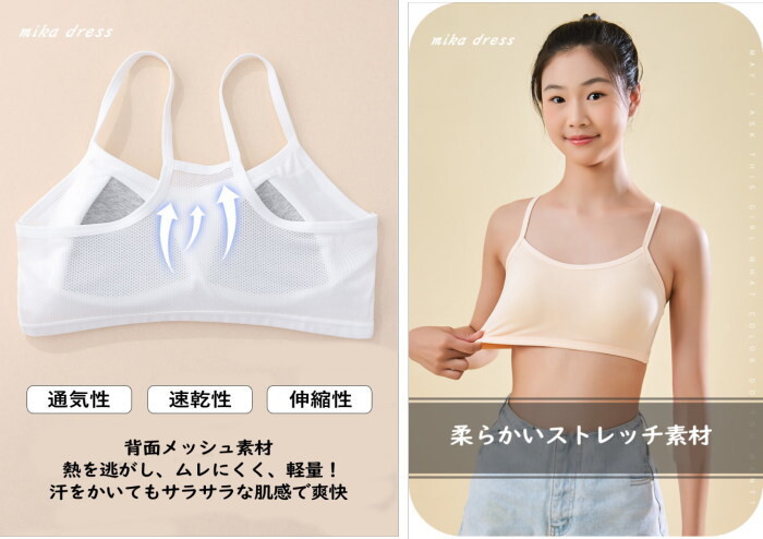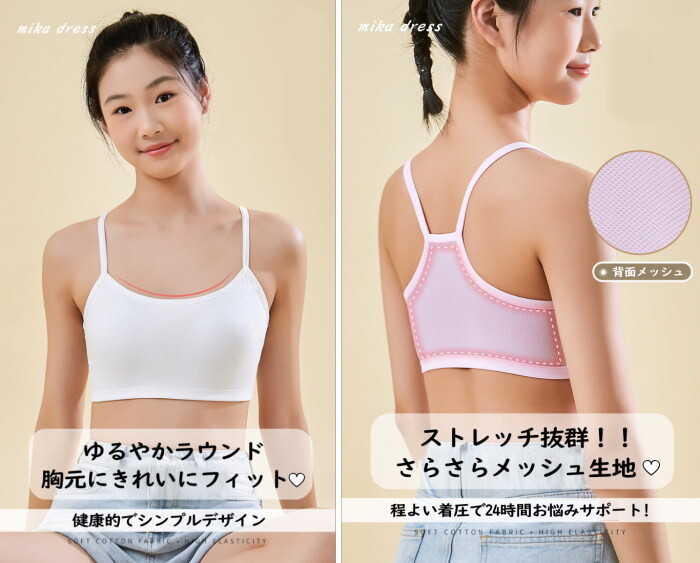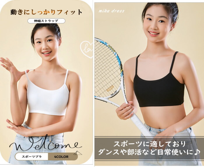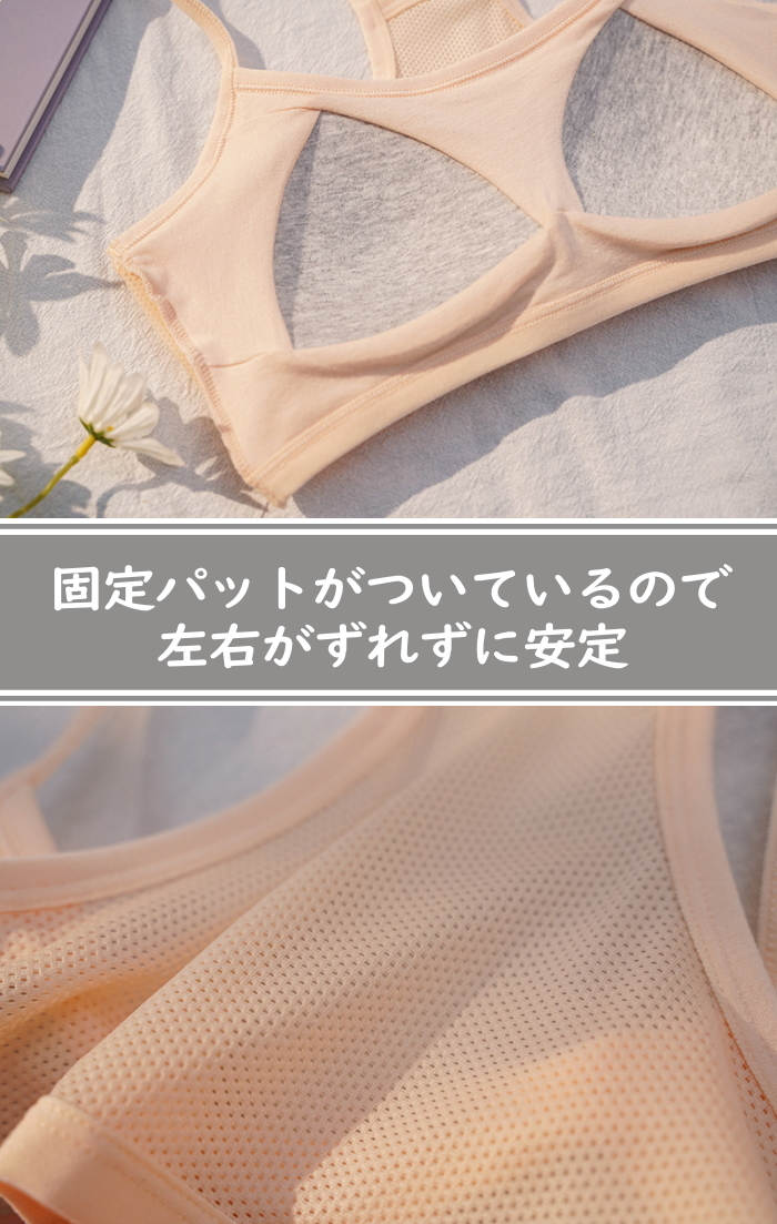 固定パッドが安定しているのでブラジャーがまだ早いキッズのスポーツブラやブラトップに。