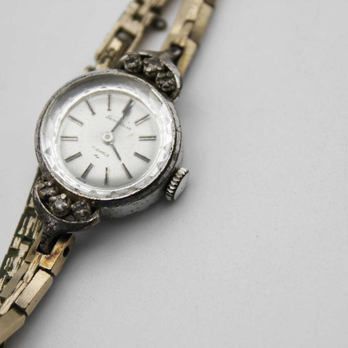 レディース腕時計 手巻き ジャンク 文字盤シルバー ラウンド