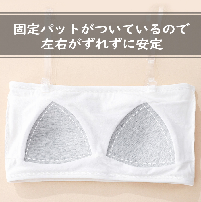 伸縮性のあるノンストレスな着心地で体にフィット。固定パッドが安定しているのでブラジャーがまだ早いキッズのスポーツブラやブラトップに。