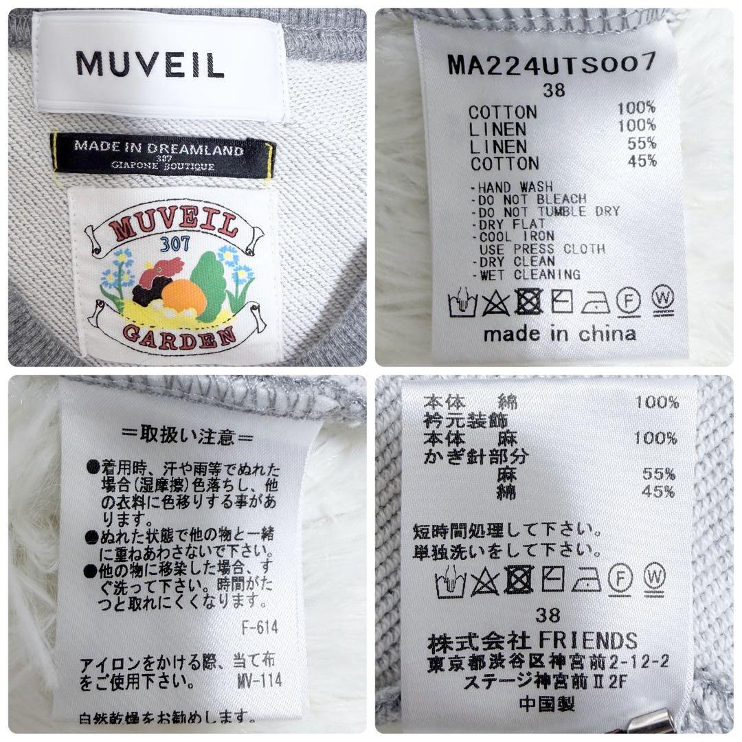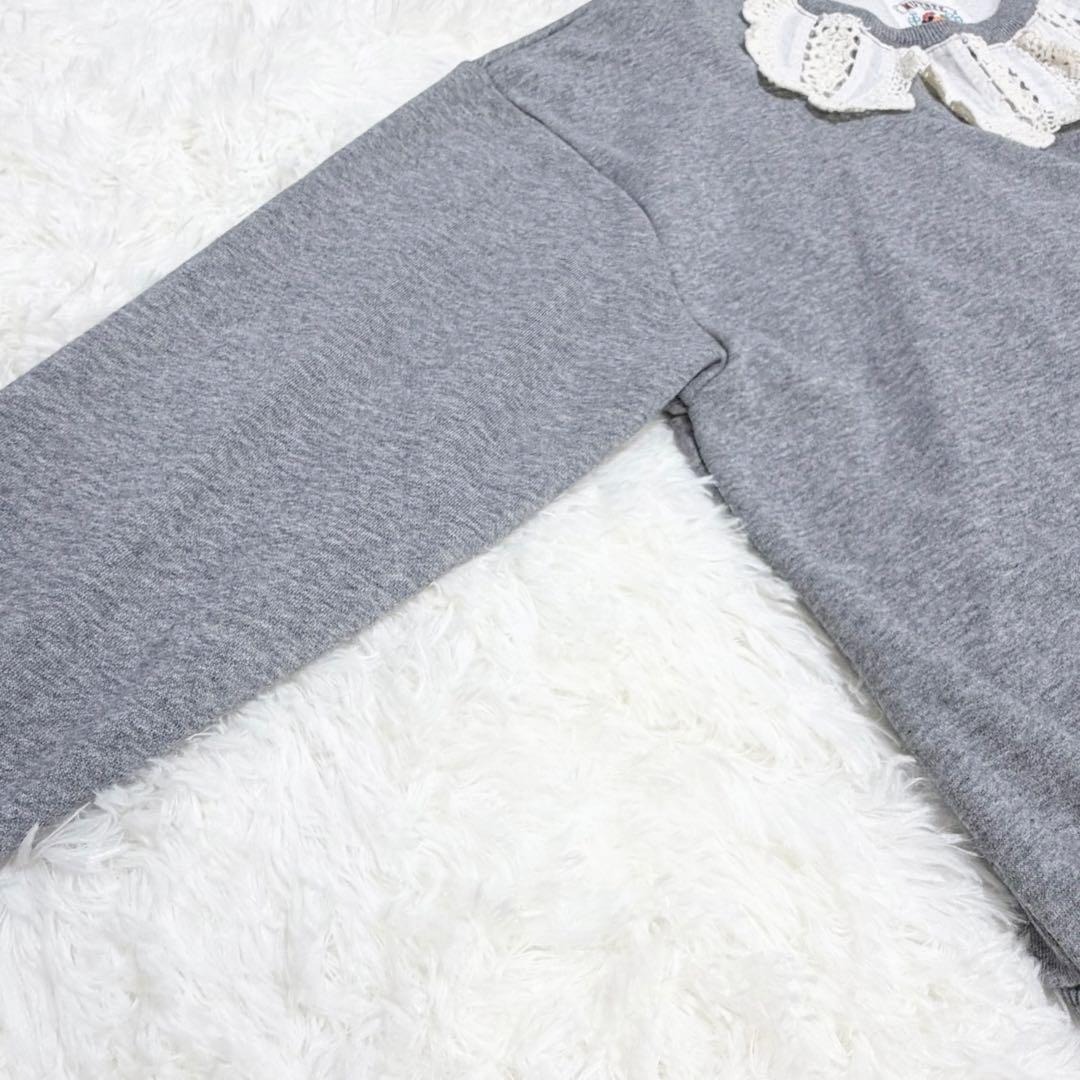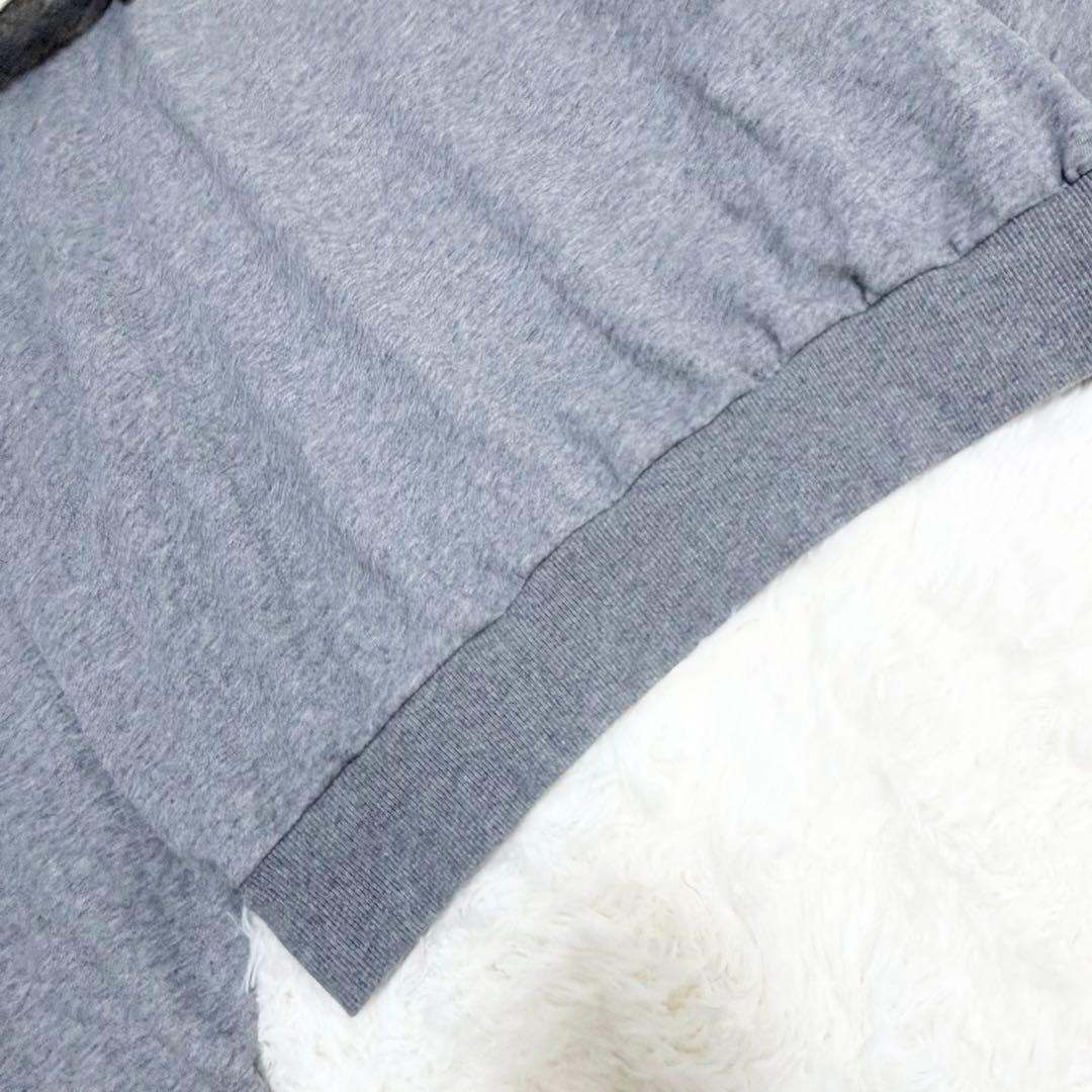 MUVEIL ミュベール スウェット トレーナー フリル レース襟 クルーネック グレー トップス カジュアル フェミニン 大人可愛い 春秋コーデ