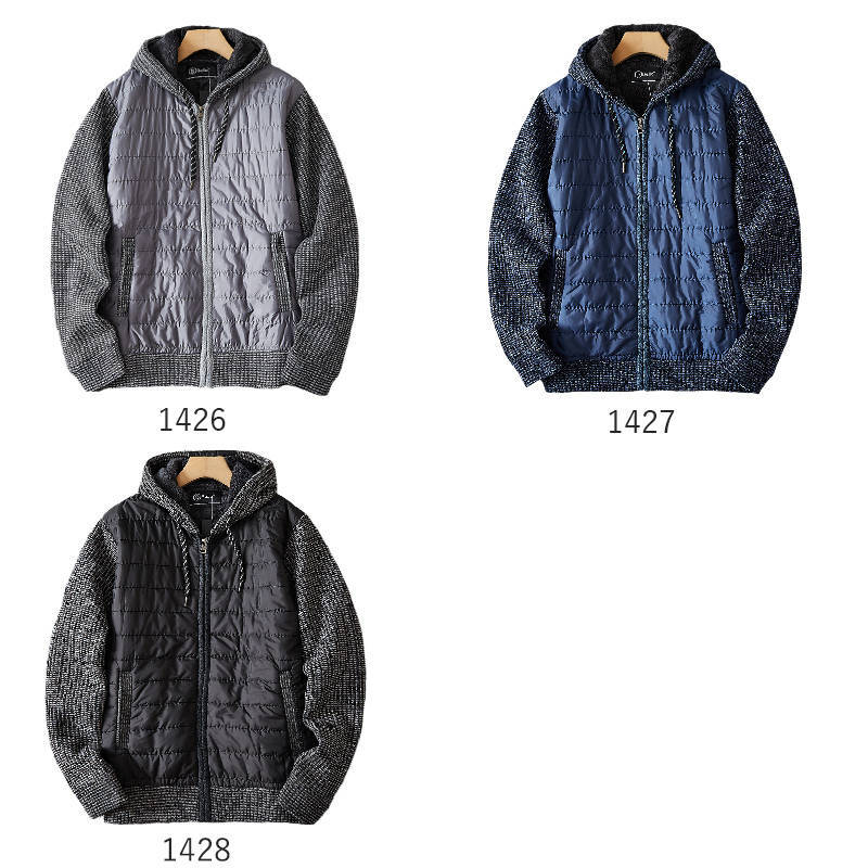 前身頃はキルティング中綿、袖と後身頃はニット切り替えで立体感抜群。