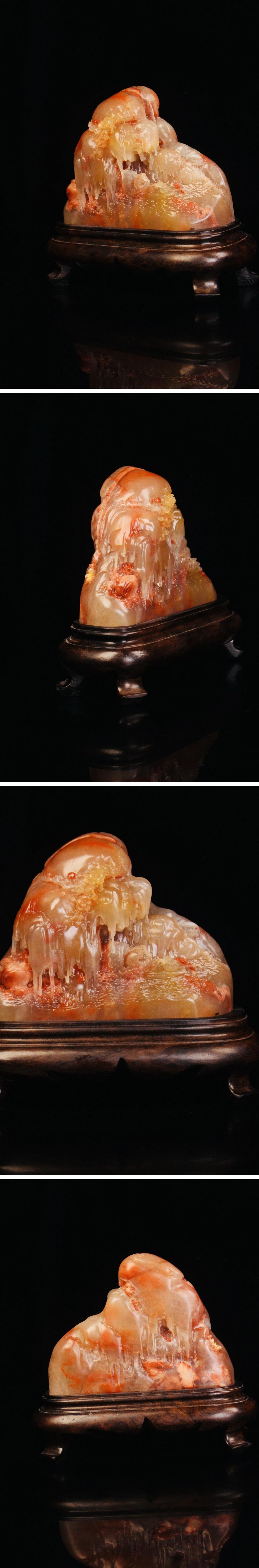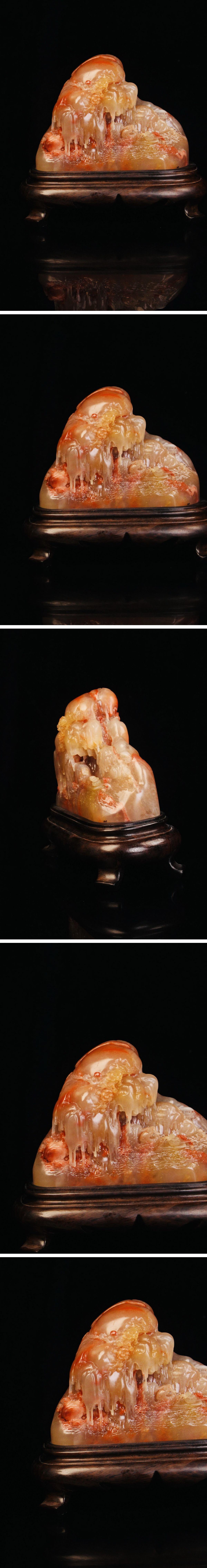 【清】某有名オークション購入 時代物 寿山芙蓉石 山水人物紋彫り物 古置物 古擺件 古美術 時代コレクション7L10-GT3