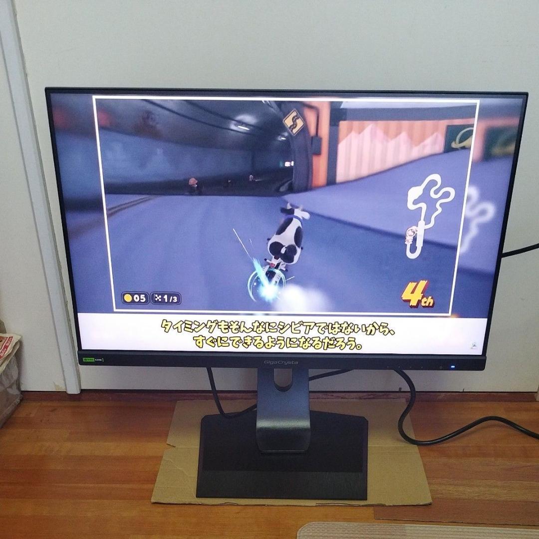 | IO DATA LCD-GD241JD 180Hz対応23.8型G-SYNC Compatible認定ゲーミングモニター「GigaCrysta」 メーカー整備品です。 商品状態について おもに店頭展示やデモ利用などで使用歴があり、製品に傷や汚れ、添付品の欠品、パッケージの傷や汚れがあるものでメーカーにて動作確認済みです。 本体は目立った傷や汚れはなく美品です。 当方でも動作確認をしています。 特に問題がない限り、出品画像は使い回しています。 添付品:電源コード(PSE適合品)、DisplayPortケーブル、台座、必ずお読みください 以上をご承知の上、入札して下さい。 <商品概要> 180Hz対応PCやPS5?に最適なゲーミングモニター 本商品は最大180Hzの高リフレッシュレート、高速応答1.0ms[GTG]に対応した23.8型ゲーミングモニター「GigaCrysta」です。 NVIDIA G-SYNC Compatibleの認定を受け、HDMI 2.1 VRRにも対応しているため、PCゲーム・コンソール機ともに親和性が高く、映像のカクつきやズレが少ないゲーミングモニターです。これ1台でFPS、MMORPGなどの幅広いジャンルのゲームをマルチにご利用いただけます。 また、「約0.04フレーム(約0.19ミリ秒)」の低遅延を実現する「スルーモード」や暗いシーンもより鮮明に表示する「Night Clear Vision」など、ゲームに最適な機能を搭載しました。 ★商品の仕様等に関しては、商品名に基づきご自身でご確認のうえご入札をお願いいたします。 詳しくはこちらをご覧下さい。 ※万が一初期不良や不具合がありましたらメーカーにお問い合わせ下さい。 いかなる場合も返品には承れません。 | |