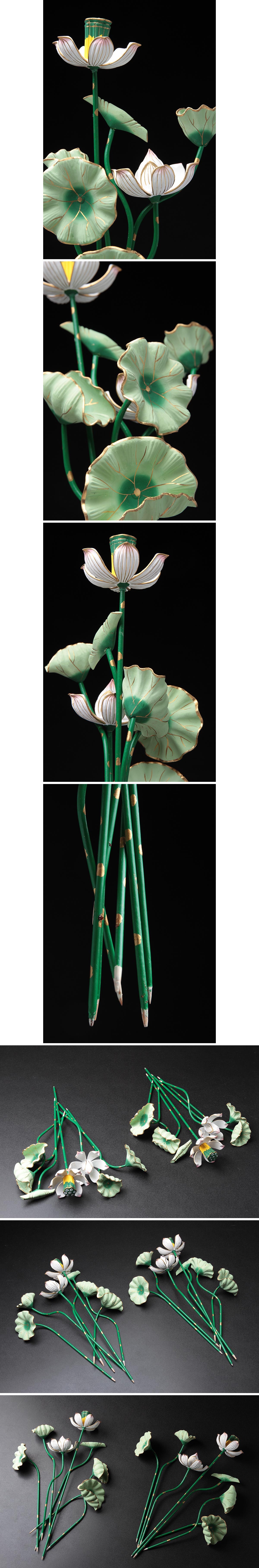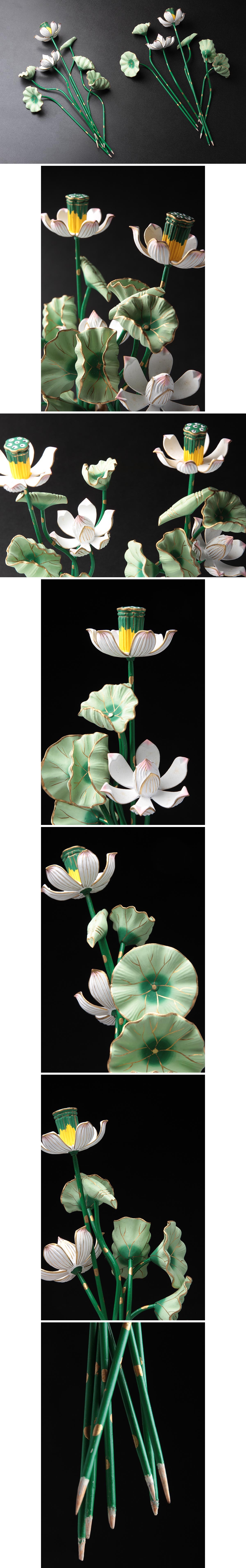 | ◆ 仏教美術 木造彩色常花(7本立) 一対・木製蓮華常花 寺院仏具 荘厳具 ◆