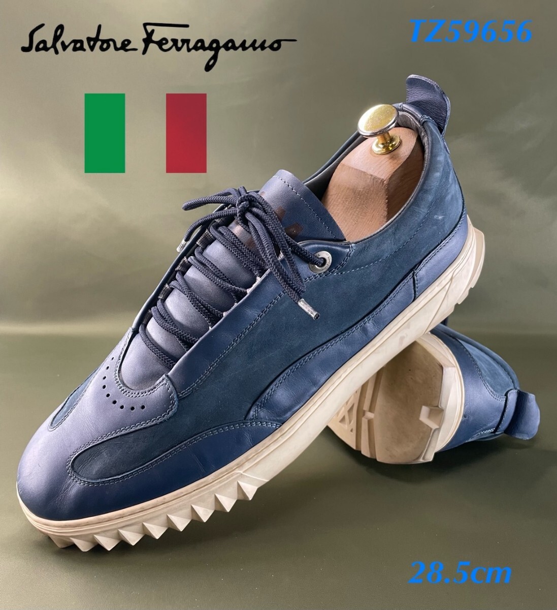 こちらは大変人気のございます、フェラガモの名作シリーズ!イタリア製【TZ59656】高級シャークソールレザースニーカーになります!
