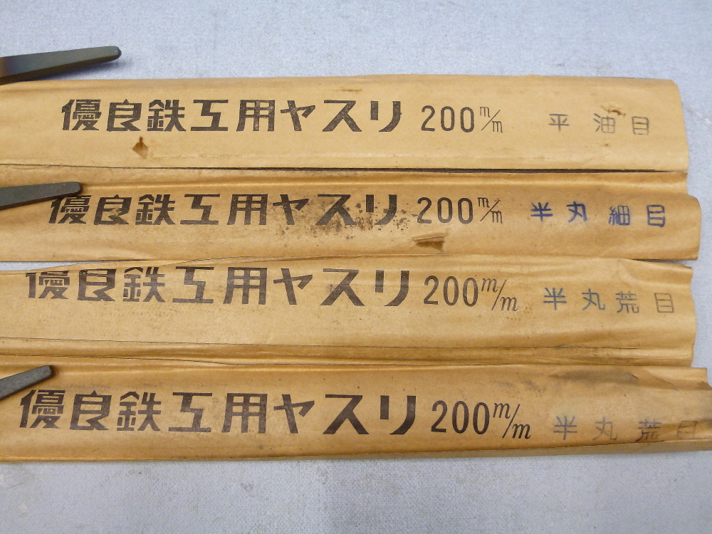 優良鉄工用ヤスリ 200mm ●平 油目 1本 ●半丸 細目 1本 ●半丸 荒目 2本 未使用 やすり