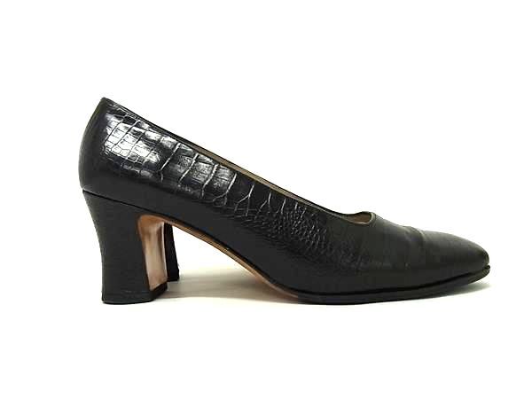 Salvatore Ferragamo フェラガモ クロコダイル型押しレザーヒール パンプス サイズ6 (約23.5cm) 靴 レディース ブラック系 DJ7246