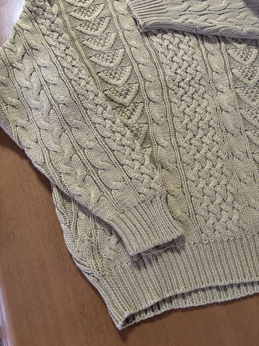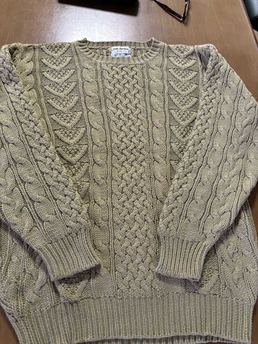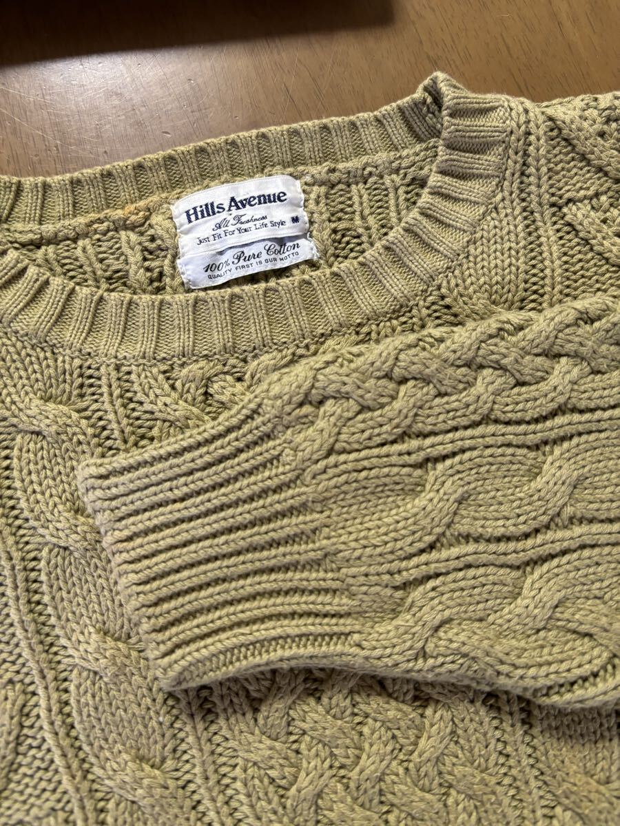 Hills Avenue Traditional 日本製 綿100% 薄モスグリーン/ケーブル編みクルーネック