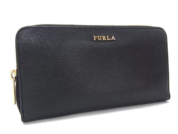 ■美品■ FURLA フルラ バビロン レザー ラウンドファスナー 長財布 ウォレット 札入れ 小銭入れ カード入れ ブラック系 DG8294