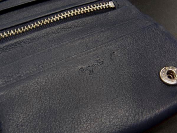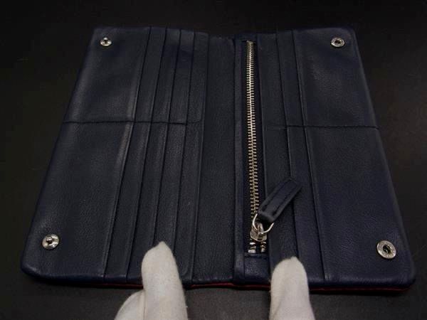 ■美品■ agnes b. アニエスベー レザー 二つ折り 財布 ウォレット 札入れ 小銭入れ レッド系×ネイビー系 DH3423