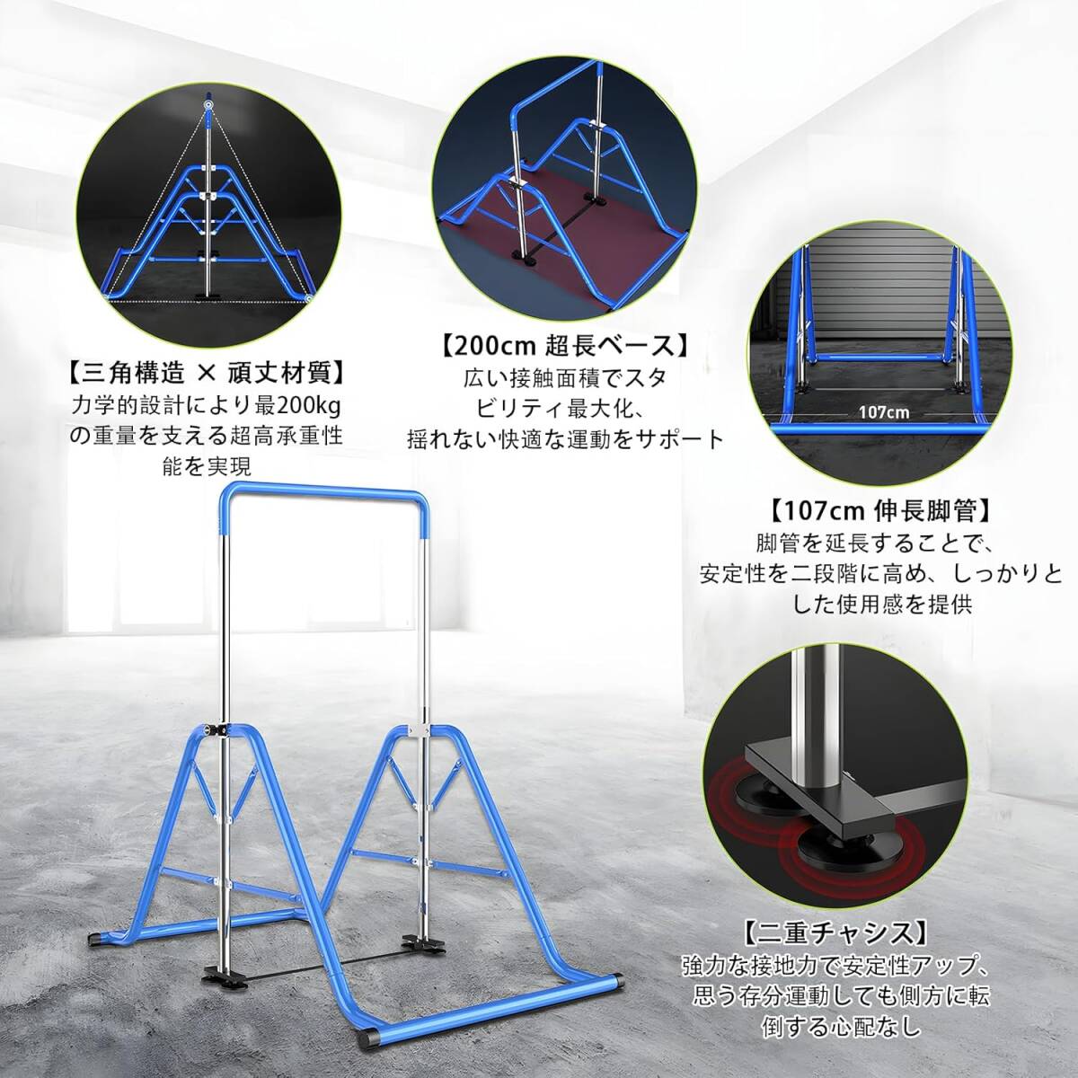 屋内、屋外併用 ぶら下がり鉄棒 鉄棒 折りたたみ式 てつぼう フィットネス 家庭用 高さ調節可能 力学三角構造