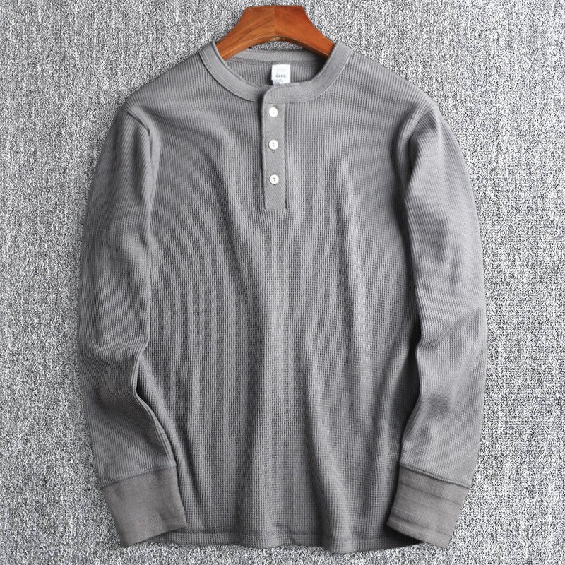 新品 欧米 ワッフル カットソー ニット ヘンリーネック 長袖Tシャツ メンズ 薄手 綿混 春秋 快適 無地 カジュアル スポーツ