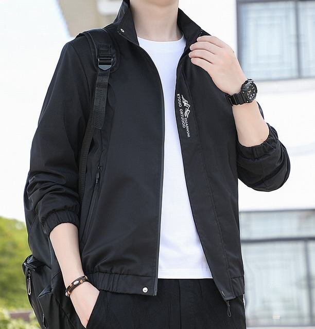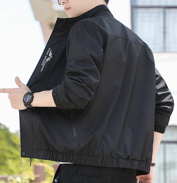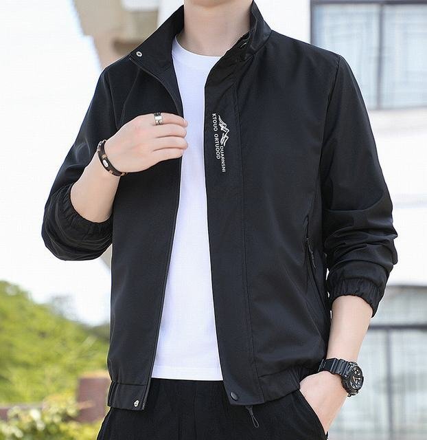 カジュアルジャケット メンズ トップス 薄手 ジャケット 無地 春 秋 前開 長袖 ブラック 4XL