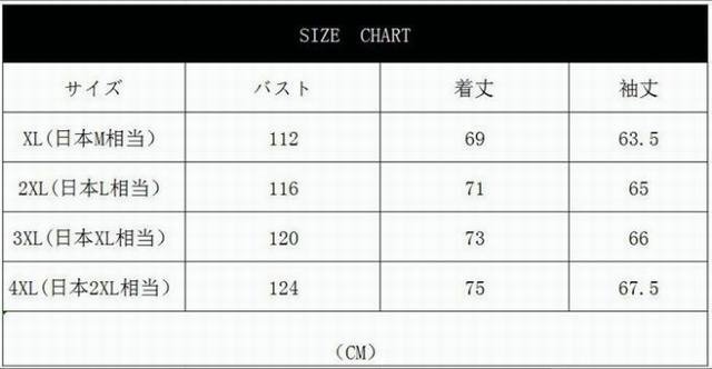 【サイズ】XL(日本M相当) 2XL (日本L相当) 3XL (日本XL相当)4XL (日本2XL相当)