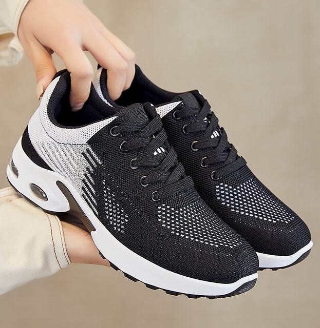 ★スニーカー レディース メッシュ レディース靴 エアースニーカー スポーツ アウトドア 春秋 軽量 散歩シューズ 通気性 ブラック24.5cm