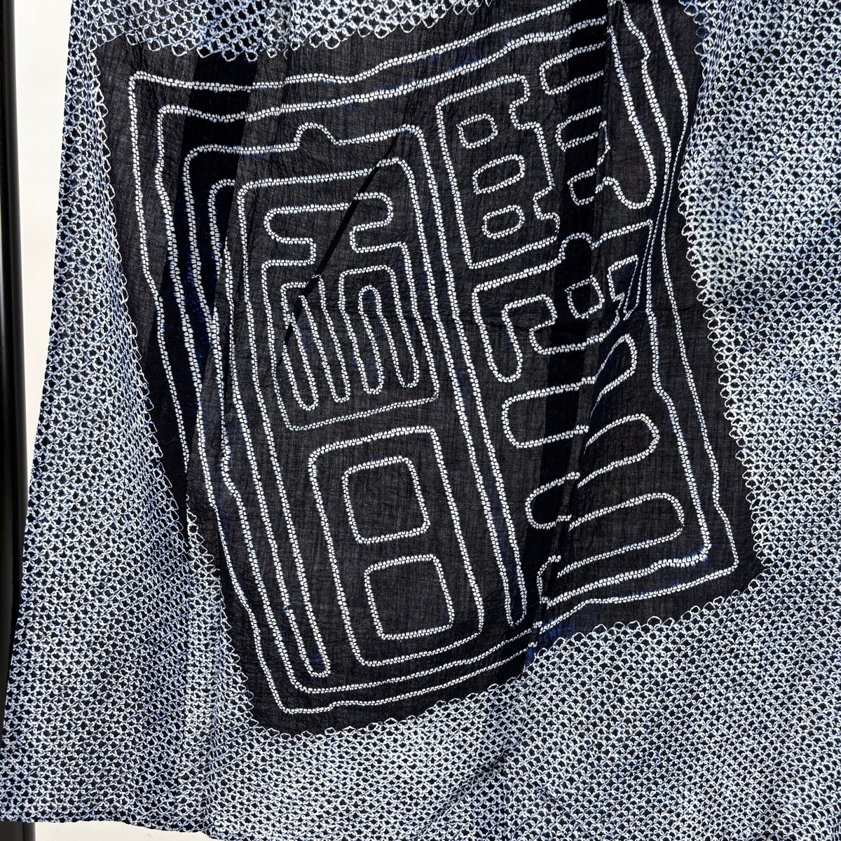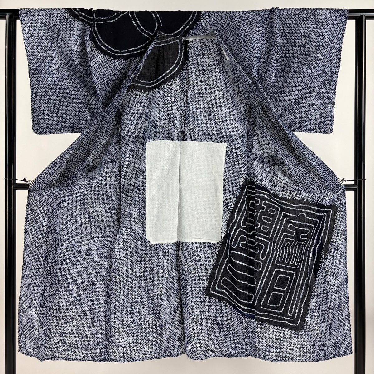 | 男着物 名品 絞り浴衣 文字 紺色 身丈137.5 裄丈64.5 S 綿 【中古】 |