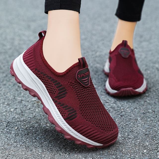 ★スニーカー レディース メッシュ レディース靴 スポーツ アウトドア 春秋 軽量 散歩シューズ 通気性 通勤 婦人靴 レッド25cm