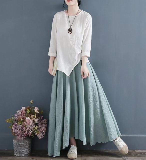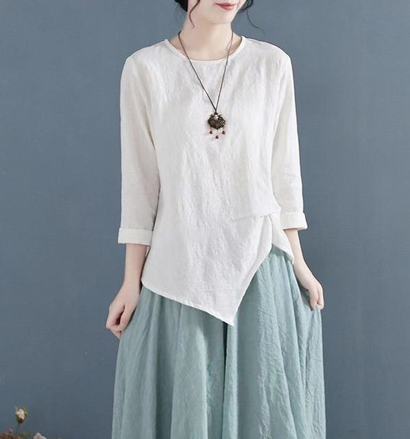 森ガール ブラウス カットソー ファッション 体型カバー ふんわり 綿 麻 シャツ 通気性 カジュアル デート ホワイト L