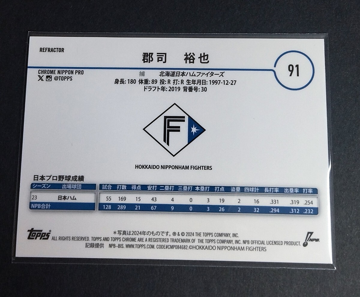 2024年topps chrome NPB 郡司裕也(日本ハム)リフラクター! No,91。