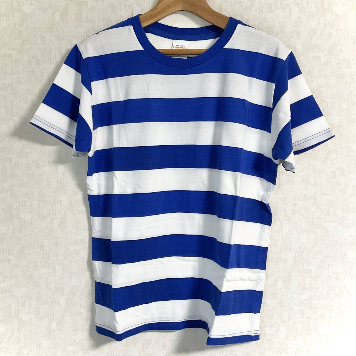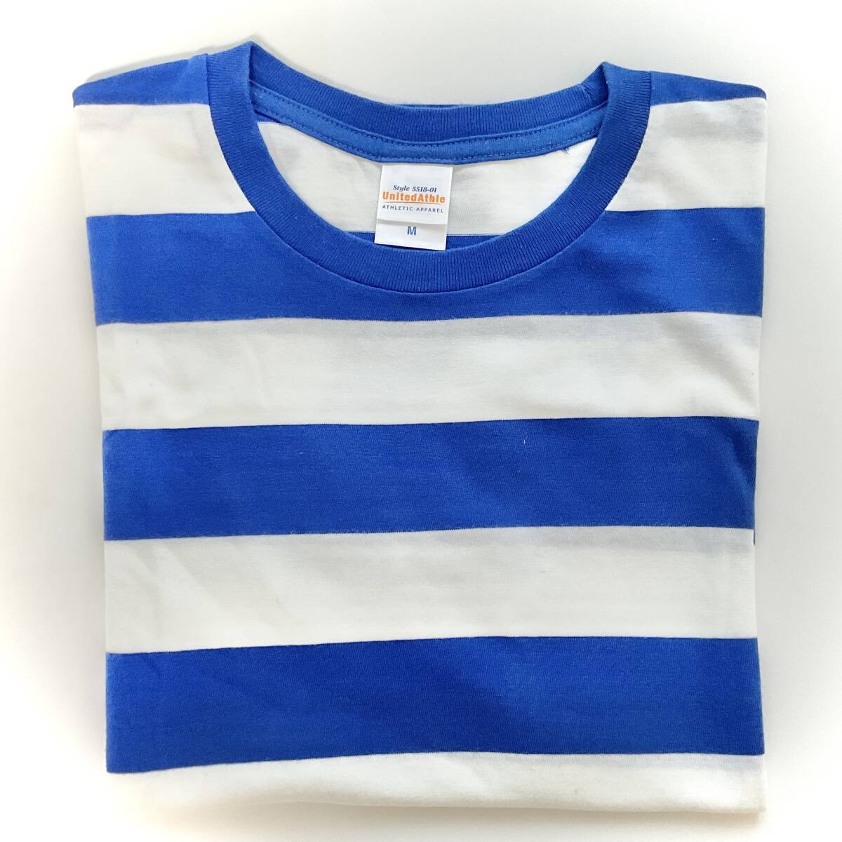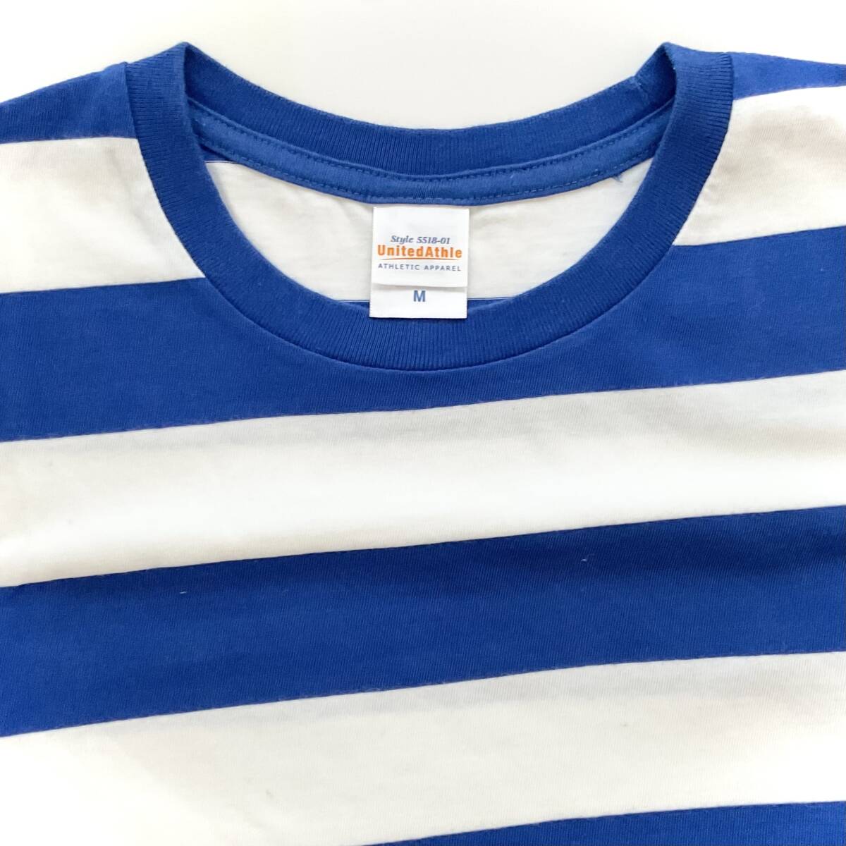 United Athle 5518-01 Tシャツ ボーダー/ブルー サイズM 綿100% ※シミ、汚れあり  W018