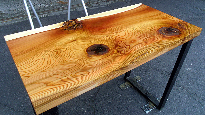 【脚材セット(別売り)追加可能】 テーブル・デスク・カウンター天板・電動式昇降デスク天板(下仕上げ済み/鋸目板・無塗装)、W 90 x D 46 x T 4 cm、13 kg 【期間限定価格】 ¥7,800 → ¥3,900 (販売期間:2025年11月23日まで) 3949 送料¥1,200 (北海道・沖縄・その他離島地域:¥ASK) 特記事項 ‐ 同時落札にて一度に複数点お買い上げいただいた場合は、それらの商品のお届け先が同一で同梱出来る事(総重量25kg以内)を前提として、商品点数に関わらず1配送につき¥1,200となります。 ‐ 商品お買上合計金額40,000円以上の場合は、送料無料(加工賃・送料・脚材は合算対象に含みません) ‐ 複数ご購入により送料無料となった場合でも総重量が25kg以上となる場合は、以後25Kg区分増毎に600円の追加送料を頂戴いたします。 ‐ 送料無料となった場合でも、北海道・沖縄・その他離島地域は、別途、中継料を頂戴いたします。 特徴 ‐ 天然スギの1枚板・無垢板。軽くて柔らかく、加工が簡単。調温・調湿作用にも優れ、空気中の有害物質を吸着する性質も持っています。 ‐ 下仕上済み(鋸目仕上げ・無塗装)。刃跡のある粗い肌触りの粗鋸目板。 ‐ 使用条件や用途によっては、このままの状態でもお使い頂ける仕上がりです。 ‐ 四辺を真っすぐにカットしてあるので壁に寄せて壁付けしたり、部屋のコーナーにぴったりと収まる、使い勝手に優れた長方形タイプ。電動式昇降デスクの天板としてもオススメです。 ‐ 既存家具の天板を外して載せ替える、または別売りオプションの脚材を取り付けるだけで、お手軽にテーブル、デスク、カウンター、リビングボード等のDIY製作をお楽しみいただけます。※既存の載せ替え、または別売りの脚材を取り付ける場合は天板の簡易な加工が必要です 用途 ‐ 電動式昇降デスク、テーブル、机、デスク、カウンター、ラック、シェルフ、ベンチ、スツール等の天板・座板・棚板 etc 特記事項 ‐ 木本来の色合いを出すため、撮影時に水を打っています。同じ色味に仕上げる場合は、オイル塗装により再現することができます。 ‐ 両耳(長辺の丸み・木皮部分)には製材時の固定器具の爪痕が残っている箇所があります。 ‐ 耳(長辺の丸み・木皮部分)および木口(短辺・両端部分)は未加工です。ご希望であれば有料にて仕上げ加工を承ります。 ‐ その他、ご購入後のトラブル防止のため、必ず画面下の「ご購入上の注意」をご確認ください。 商品詳細 ‐ 樹 種:杉(スギ) ‐ 含水率:11.3 %(自然乾燥材) ‐ 仕 様:W 900 x D 460 x T 42 mm、13 kg ※備考1、2 ‐ 面 :下仕上げ済み(粗鋸目板) ‐ 両 側:未加工 ※長辺側面の木皮部分:木皮、傷、汚れ、トゲが残っています ‐ 両 端:未加工 ※短辺断面のカット部分:裁断面の縁にはトゲが残っています ‐ 塗 装:無塗装 ‐ 備考1:奥行D=トップ画像の画面向かって左側460mm → 中央460mm → 右側460mm ※計測位置、方法によって若干前後します ‐ 備考2:厚みTの数値は、3mm~10mm前後する場合があります スチール脚材セット ※有料オプション販売品※ ![]() |