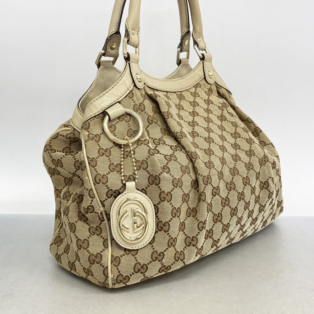 【5mc3695-h】グッチ トートバッグ GGキャンバス スーキー 211944 キャンバス レザー ブラウン ベージュ シャンパンゴールド金具