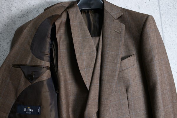 滑らかで艶感のある肌触りの良いREDA super130'sの希少な生地を使用したAMFステッチ、お台場仕立て、本切羽等、同価格帯でも拘りのある仕様で作られた日本製の型見本のスーツです。