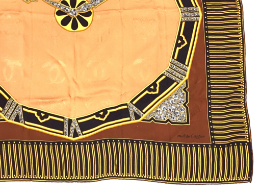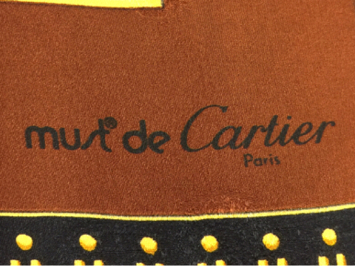 | マストドゥカルティエ 総柄 スカーフ サイズ 縦約83cm×横約85cm ブラウン系 服飾小物 ブランド小物 Cartier 現状品 |