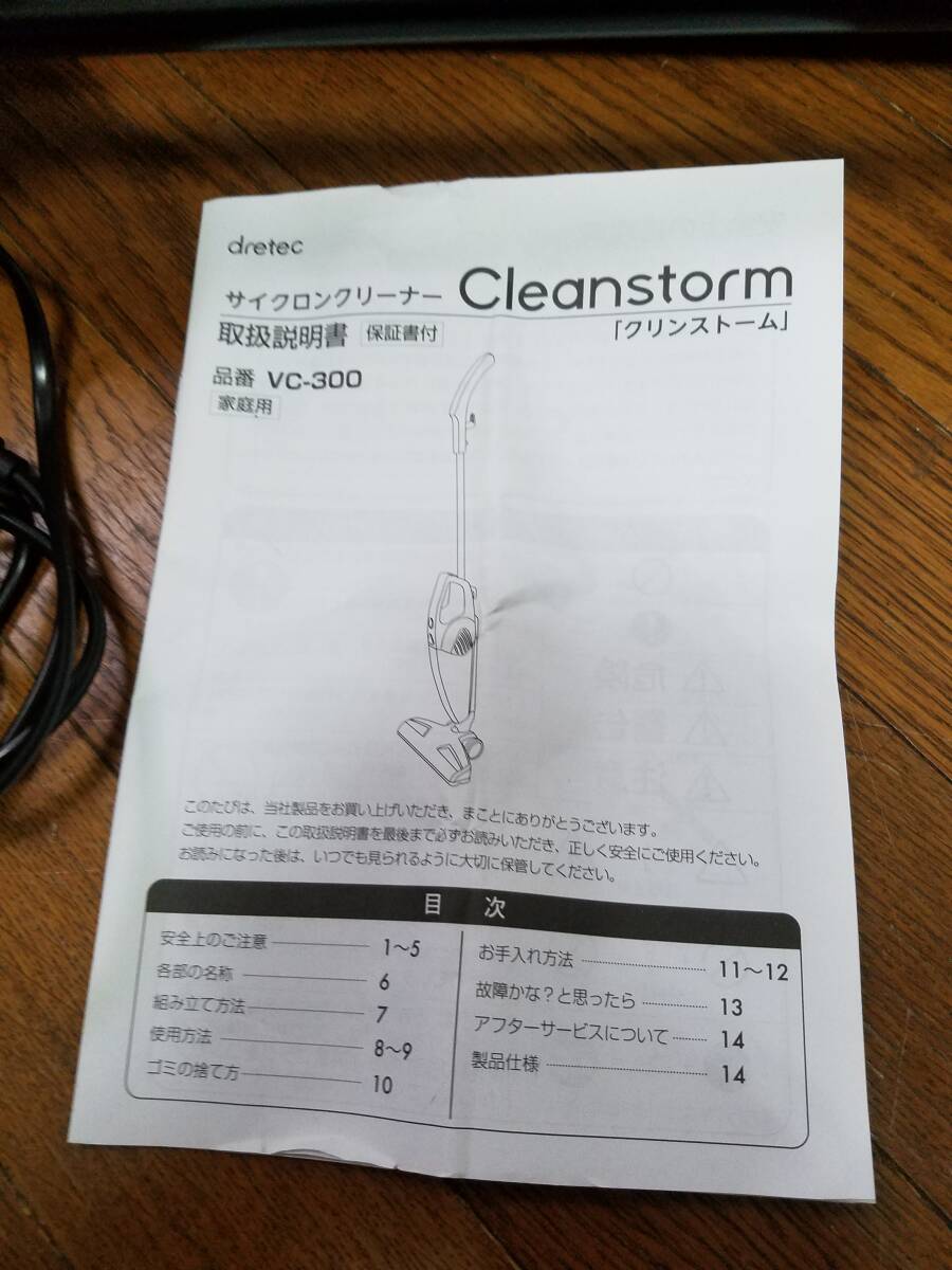 【家電】 dretec ドリテック Cleanstorm クリンストーム サイクロンクリーナー VC-300 スティック ハンディ 掃除機 元箱付 動作確認済み