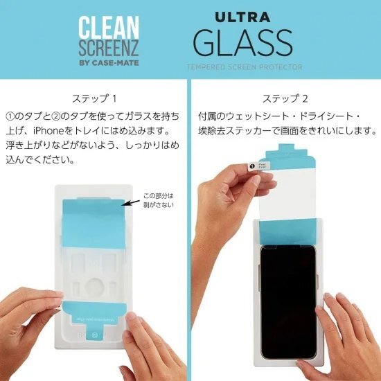 また、便利な「ウェットクリーニングクロス」「ドライクリーニングクロス」「ほこり除去ステッカー」「ガイドフレーム」の4点が付属するので、簡単かつ美しくガラスをiPhoneに貼りつけることができます。