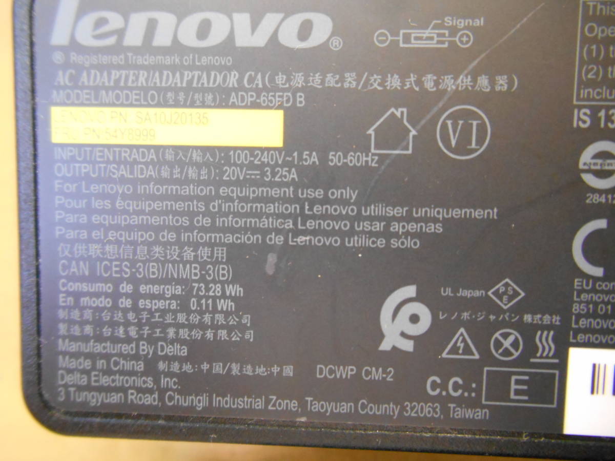 Lenovo 純正 ACアダプタ ADP-65FD B 20V 3.25A 角型(12